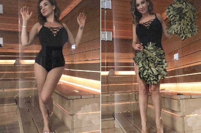 Вот свежие фото телеведущей в бане, где в купальнике четко видно ее «прежнюю» фигуру.
