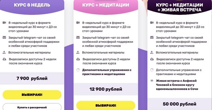 Вот что пишет Лена Миро в своем блоге: «Мне не нравится Анфиса Чехова. Это откровенно толстая баба, которая позиционирует себя как худую еще и заработать на этом пытается. Подняв пуш-апом жирные сиськи, Анфиса провозгласила себя гуру похудения и теперь продает какую-то там систему».
