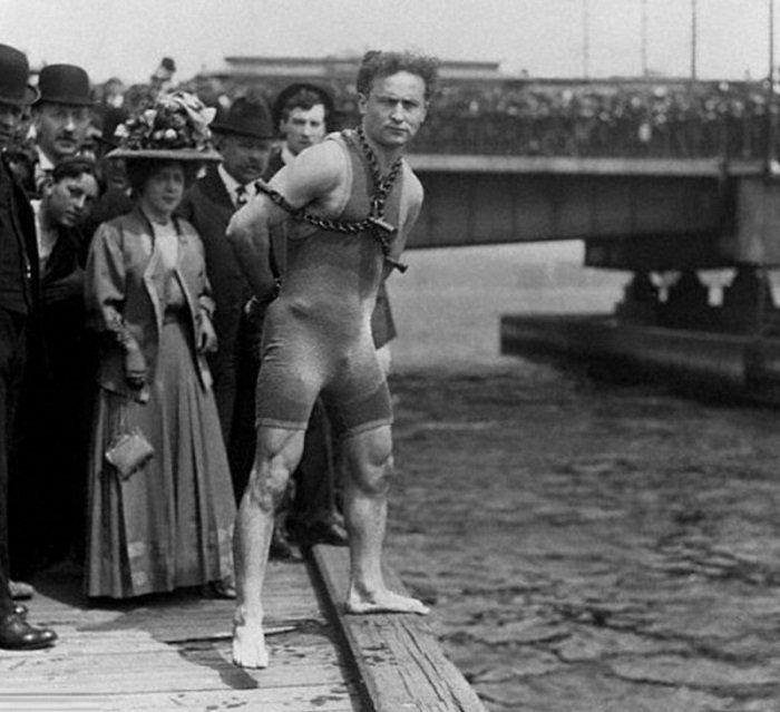 Гарри Гудини готовится к трюку в Бостоне, 1906 год
