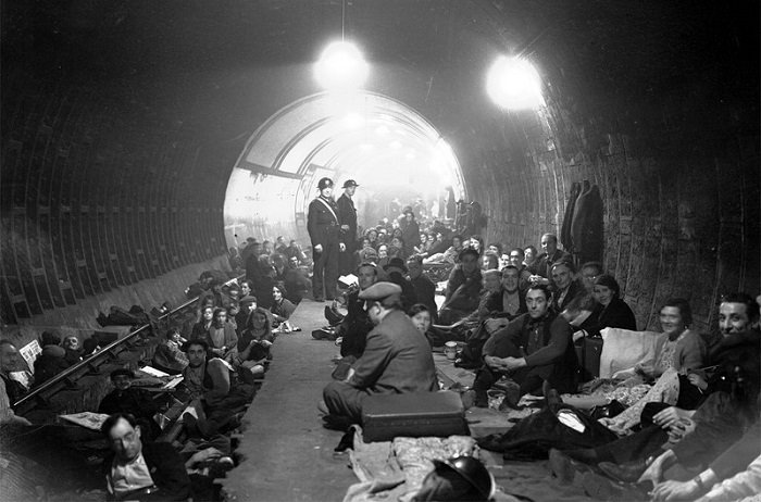 Жители Лондона укрываются в метро от немецких бомбардировок, 1940 год