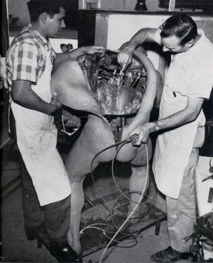 Сотрудники компании «Дисней» готовят робота для выставки, 1964 год