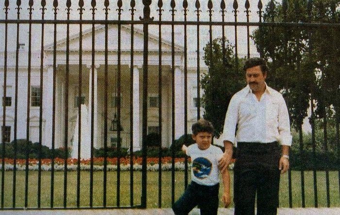 Пабло Эскобар с сыном возле Белого дома, 1980-е годы