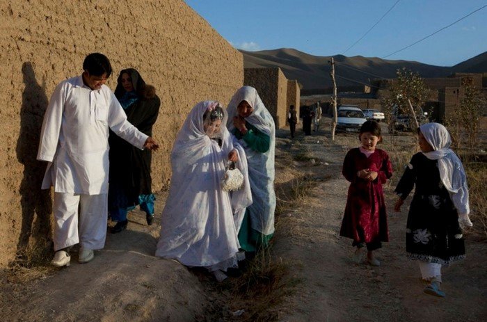 Та же самая картина наблюдается во множестве восточных стран. На снимке ниже запечатлена свадебная церемония в афганской провинции Бамиан. Браки такого рода здесь обыденность. У этих малышек нет детства: семья обычно спешит выдать девочку замуж как можно быстрее, избавляясь от «обузы».