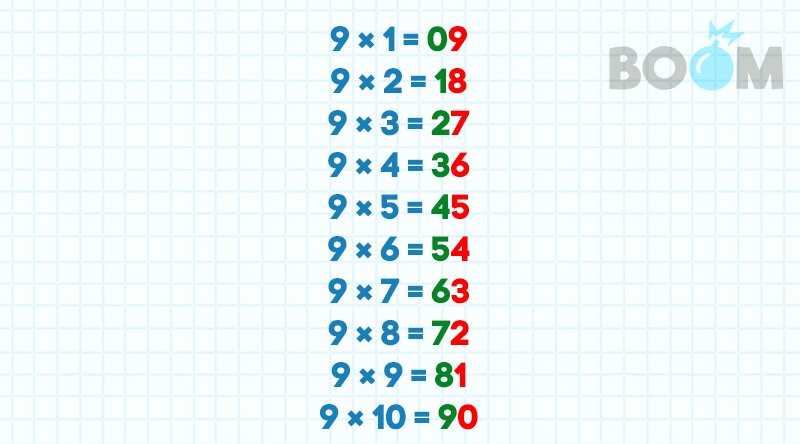 Табличку умножения на 9 все мы уже давно применяем в жизни автоматически. А ведь если рассмотреть ее поближе, вырисуется интересная закономерность.