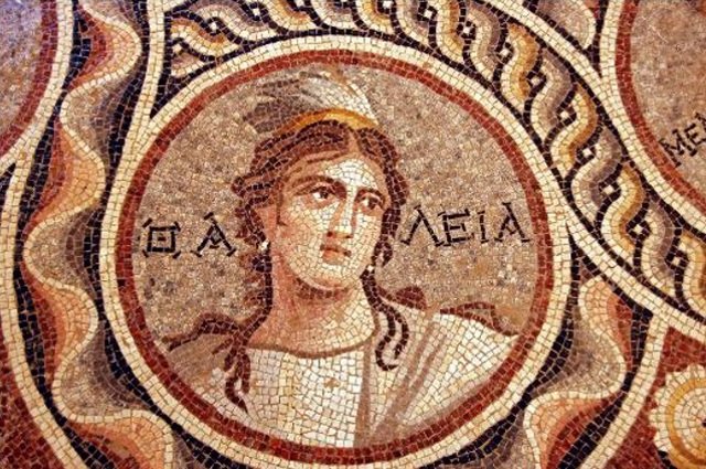 На этой мозаике изображены музы — покровительницы искусств и наук.