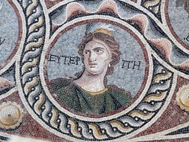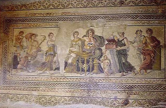 К примеру, одна из самых хорошо сохранившихся мозаик находилась в спальне одного из домов. На ней изображен бог любви Эрос с Психеей. Согласно мифам Эрос постоянно преследовал девушку. Отношения между ними были весьма сложными: порой царила любовь, а иногда Психея мстила богу за слишком навязчивые ухаживания.