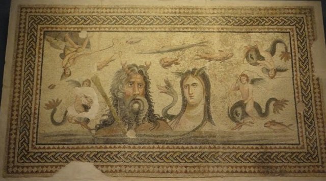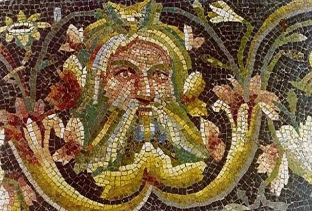 Еще одна хорошо сохранившаяся мозаика, которая изображает речного бога Ахелоя — отца сирен.
