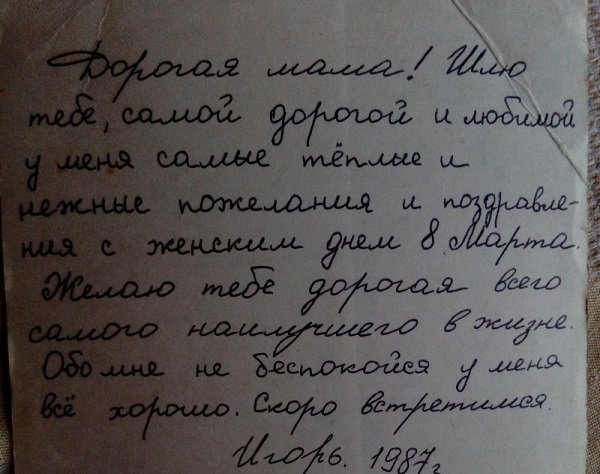 До этого он постоянно писал письма маме. Поэтому Валентина Викторовна никак не хотела верить в то, что ее сына нет в живых. На протяжении 20 лет женщина ждала хоть какой-то весточки от Игоря.