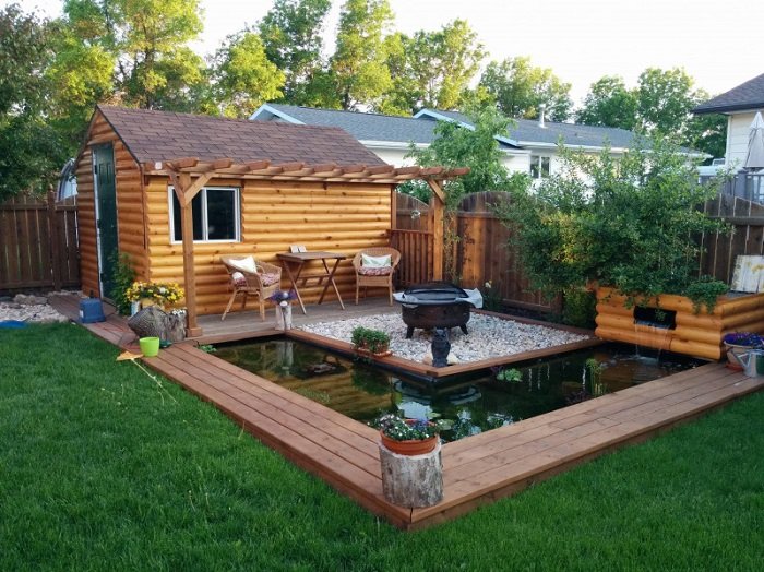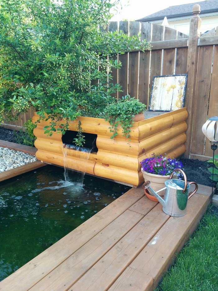 Лишних досок хватило, чтобы обшить фонтан. Конструкция легко снимается, и зимой можно спрятать коробку в сарай. Вот что получилось в итоге…