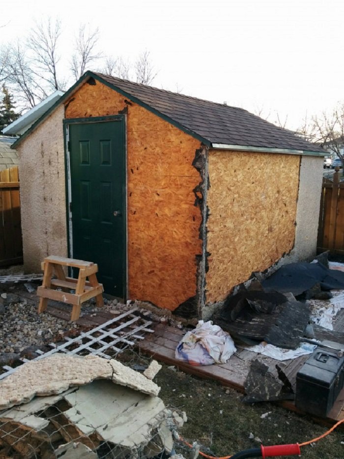 Осталось только обшить сарай досками. Мужчина вспоминает, что поиск подходящего цвета для дерева занял больше времени, чем сама работа.