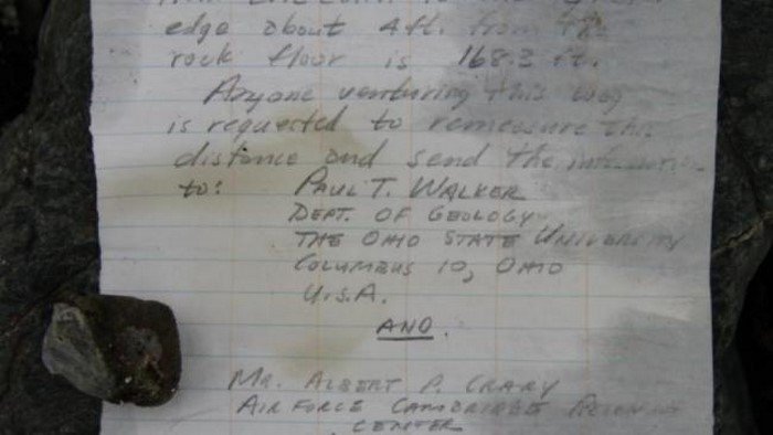 Пол Уокер, геолог из США, в 1959 году запустил любопытный эксперимент. Мужчина написал письмо, засунул его в бутылку, а ту оставил под небольшим курганом из камней на канадском острове Уорд-Хант. В записке Пол просил того, кто ее найдет, измерить расстояние от края ледника до места, где лежала бутылка.