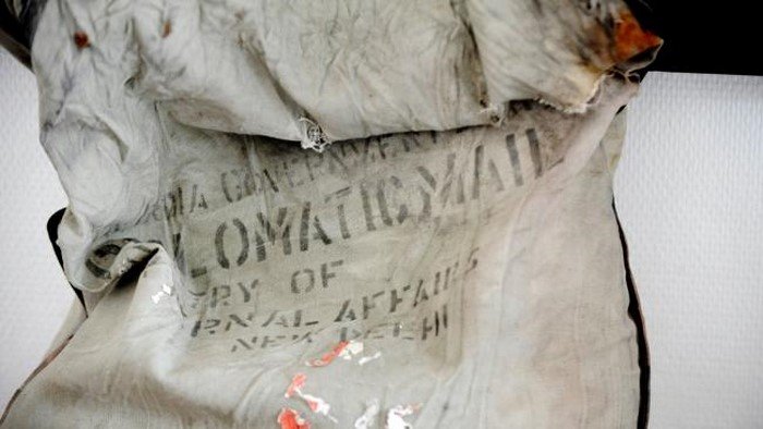 Общая стоимость сокровища составила 377 000 долларов! Альпинист, надо заметить, оказался сознательным человеком, и сдал клад полиции. Оказалось, что драгоценности имеют отношение к одному из упавших в ледниках Монблана самолетов. Вещи вроде этой шкатулки или сфотографированного выше мешка с дипломатической почтой по-прежнему иногда обнаруживаются на склонах тамошних гор.