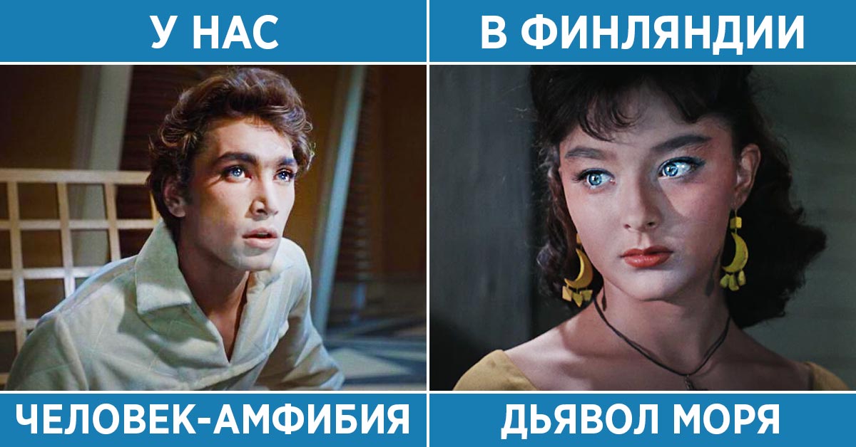 Почти во всех странах «Человек-амфибия» сохранил оригинальное название, но вот в Польше, Финляндии и тогда еще Югославии (на сербском языке) почему-то превратился в дьявола моря. А ведь дьяволами морей еще называют вид скатов манта. Ну это еще ничего, во Франции киноленту окрестили «Тарзаном морей»!