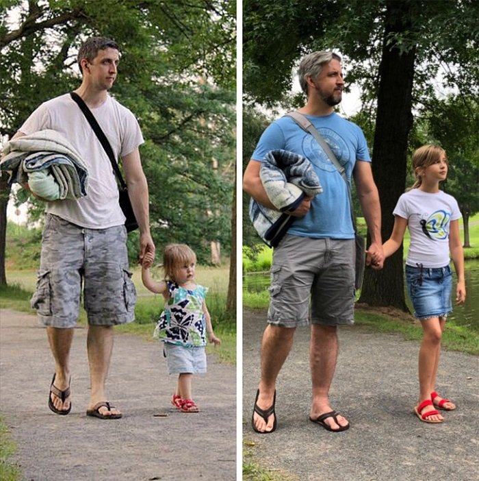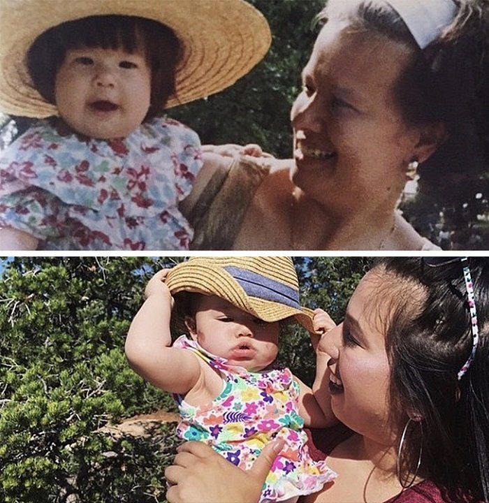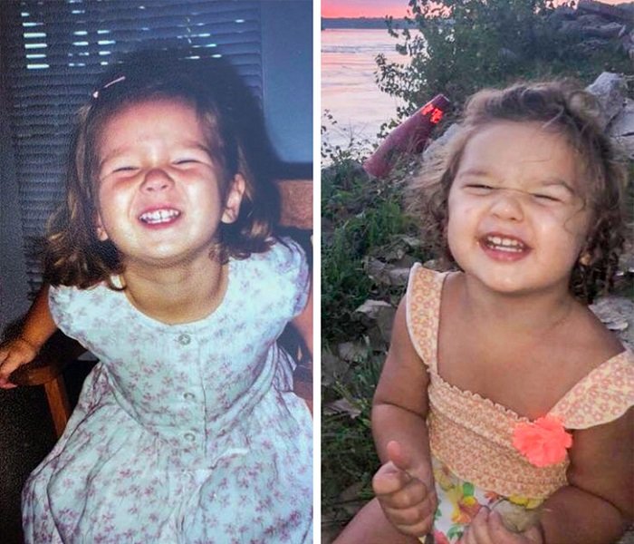 «Моя дочь, 2 года, в 1998 году (слева) и моя внучка, 2 года, в 2019 году (справа)»