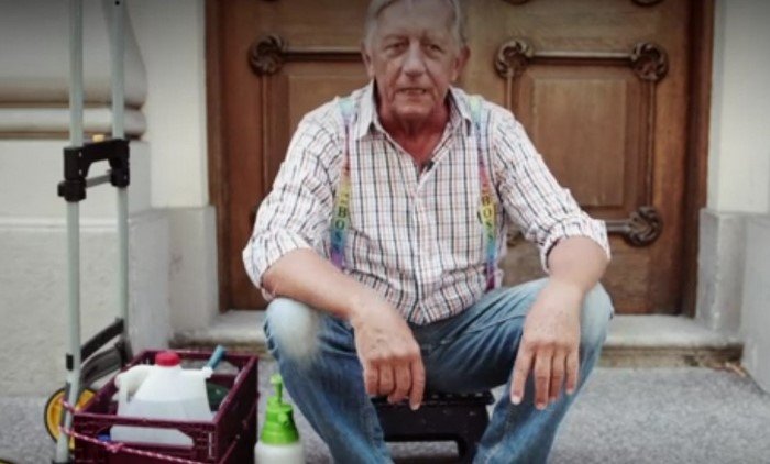 Герхард Гейер всю жизнь проработал на железной дороге. Пожилой австриец давным-давно вышел на пенсию и мог бы спокойно клевать носом перед телевизором целыми днями. Однако 79-летний мужчина не привык сидеть сложа руки. Целыми днями Герхард ходит по улицам родного Зальцбурга, таща за собой набитую чистящими средствами тележку.