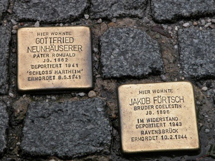 Камнями преткновения называют особые мемориальные таблички, устанавливаемые на улицах австрийских и немецких городов. Они представляют собой бетонные кубики с прикрепленными к ним латунными пластинами.