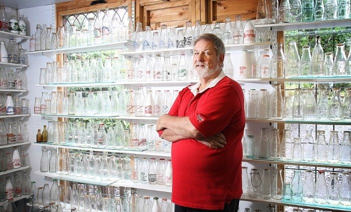 Вот уже 30 лет мужчина собирает бутылки из-под молока: в его коллекции 20 000 бутылок, и все они отличаются друг от друга!