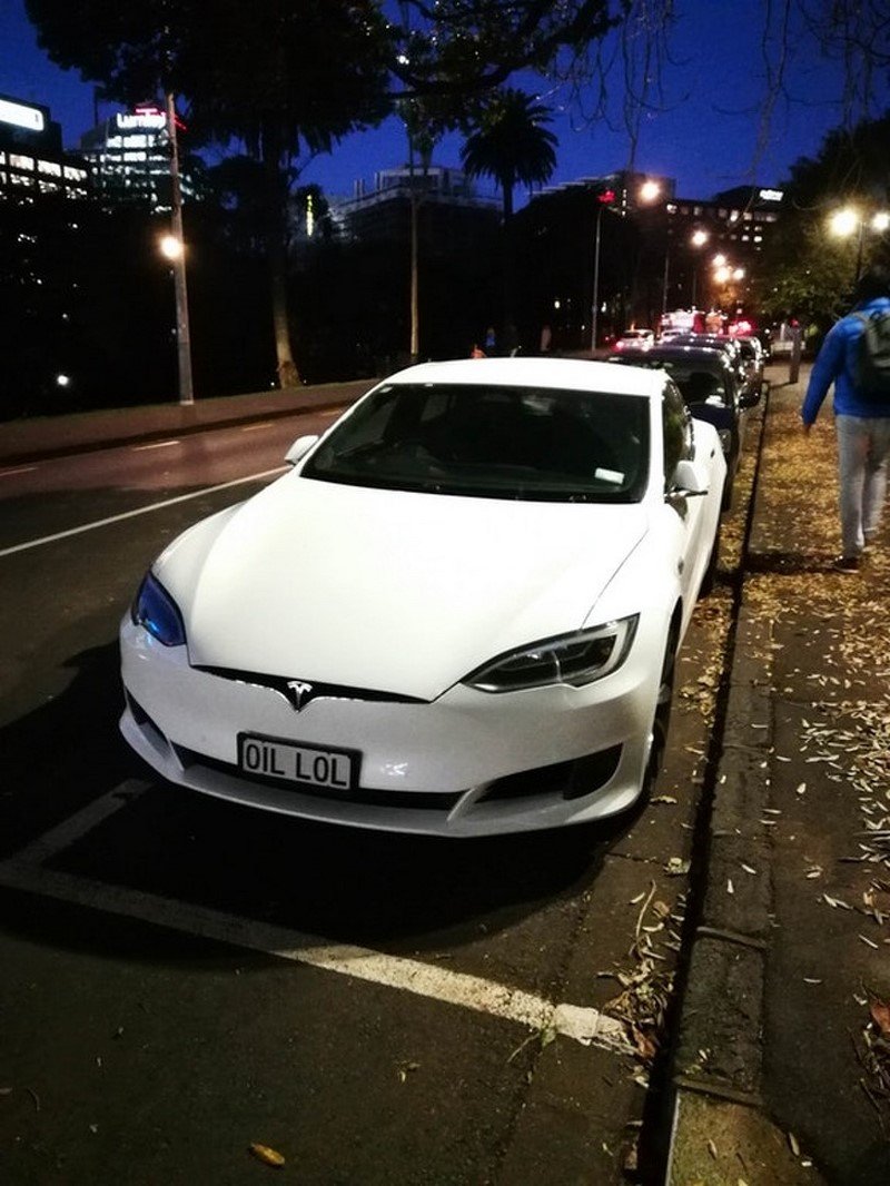 На номерах электрокара написано «Нефть как смешно» (на самом деле это игра слов)