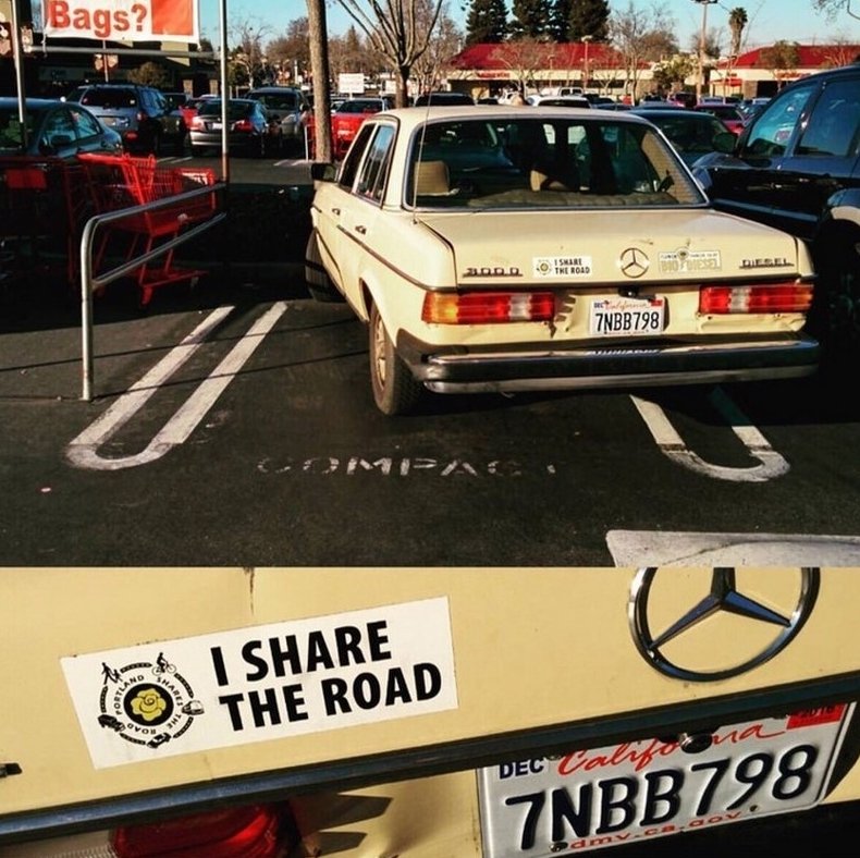 Он делит дорогу с другими, но места для парковки предпочитает оставлять себе