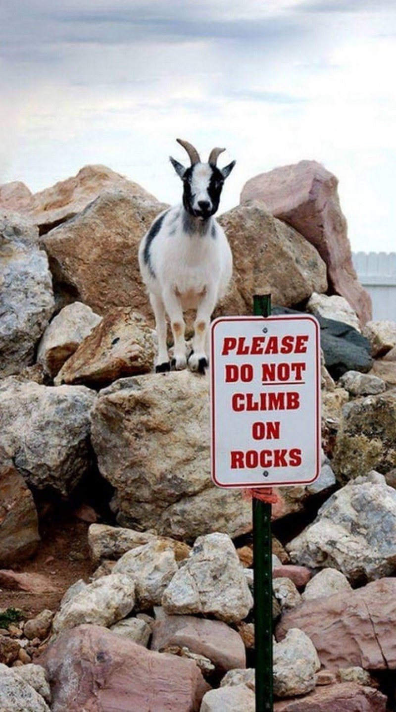 Надпись гласит «Пожалуйста, не забирайтесь на камни», но этот парень оказался настоящим козлом!