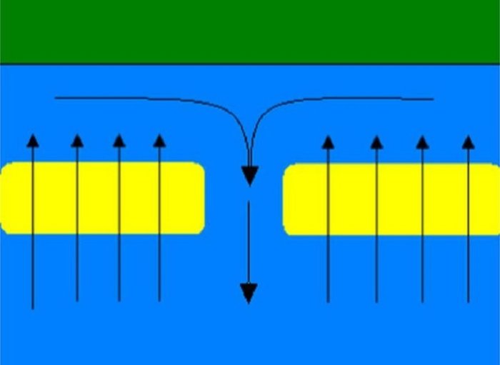 Попадая в такое течение человек недоумевает, ведь, направляясь к берегу, плывет на месте. Это зачастую вызывает панику, которая в таких случаях тоже не помощник. Обычно ширина такого течения 2–3 метра, а скорость около 4–5 км/час. Они не очень опасны, но иногда образуются течения шириной до 50 м и длиной до 400 м, скорость которых может достигать 15 км/час.
