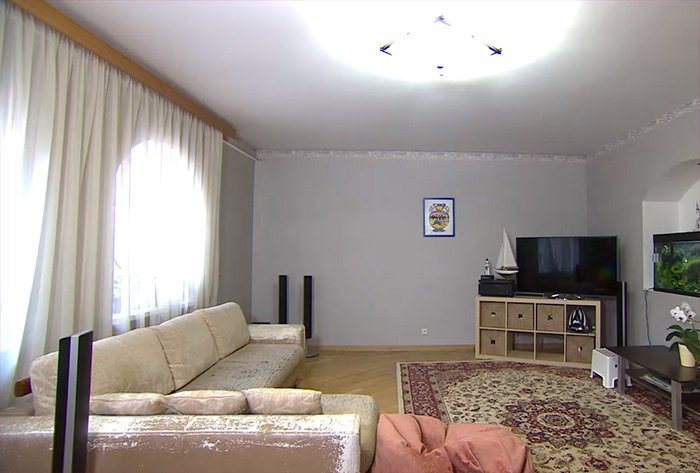Тем не менее, это всё же новый современный ремонт, поэтому семья Измайловых своей новой гостиной осталась очень довольна.