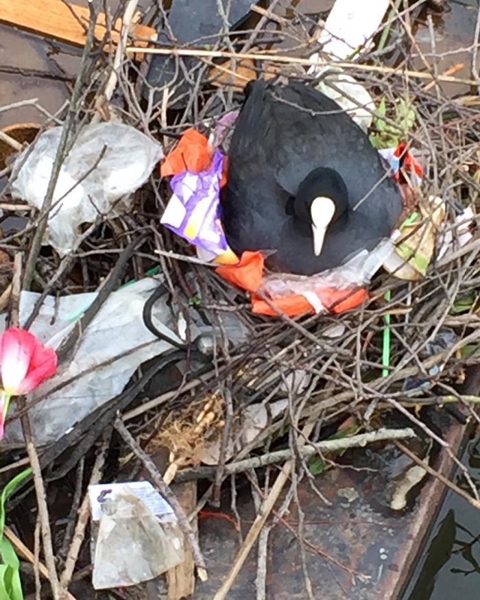 Морские птицы и рыба начали питаться пластиком из-за его обилия в мировом океане. Пластик находится в желудках примерно 40 процентов птиц и 20 процентов китообразных. Это часто становится причиной их гибели.