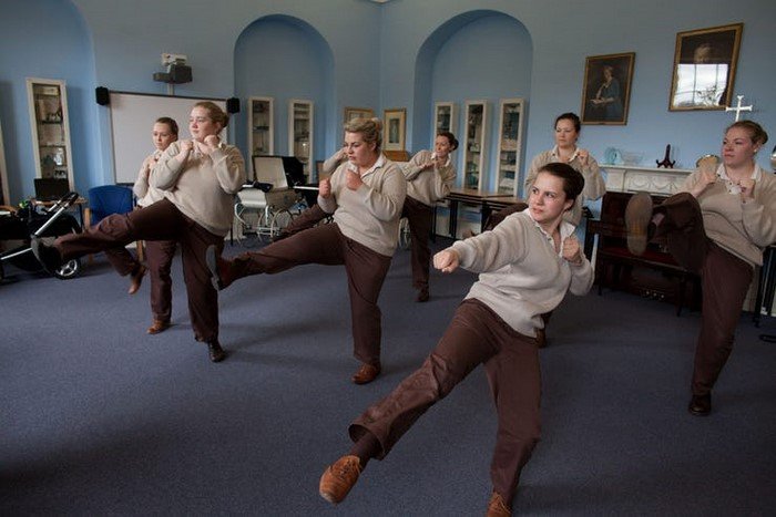 Будущих Мэри Поппинс обучают технике рукопашного боя, чтобы те в случае необходимости могли постоять за маленьких детей и себя. Гувернантки, обученные тхэквондо, умеют отражать удар и нападать, в числе их навыков есть и вождение на экстремальной скорости!