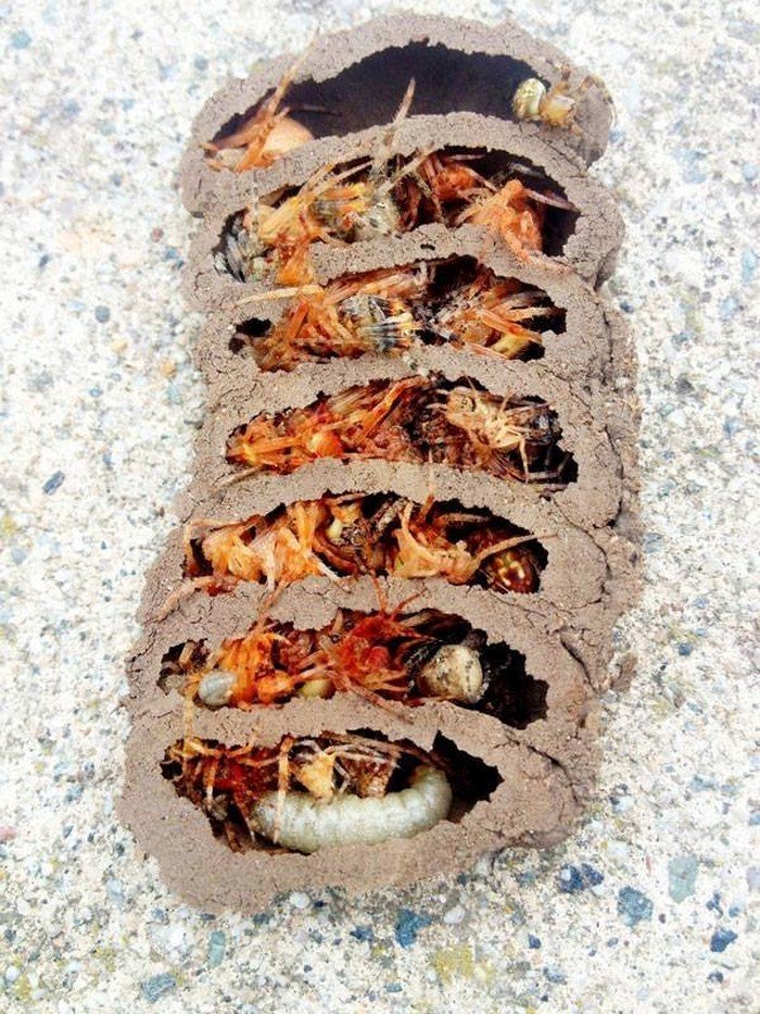 Далеко не самое приятное зрелище. Гнездо осы, которая охотится на пауков