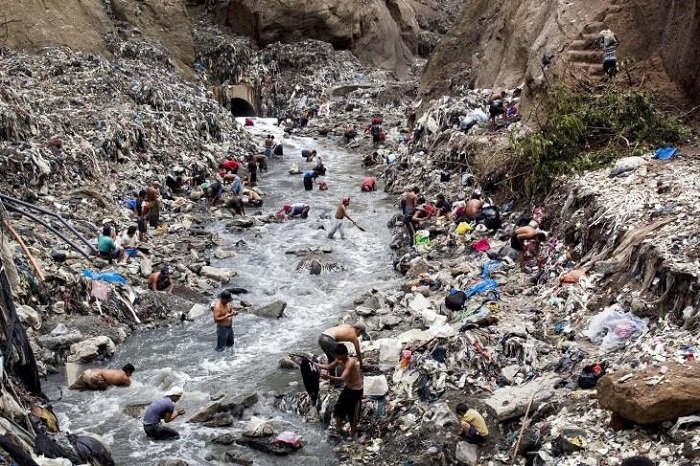В Гватемале бедняки на дне рек собирают металлолом и вещи, которые можно использовать и продать. Примечательно, что убирать завалы они не собираются