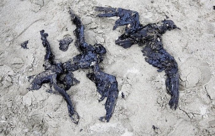 Мертвые птицы на берегу Новой Зеландии. Причиной их смерти стали выбросы масла с транспортных судов