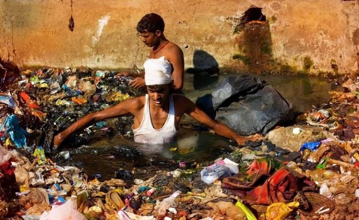 Индусы копаются в мусоре в реке Улхас. Сюда жители Мумбаи без стеснения сбрасывают свои отходы