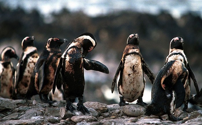Пингвины испачкались в нефти, вылившейся из затонувшего танкера
