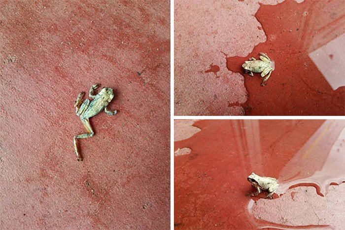 Ну а эта лягушка сама по себе не особенно интересна. Куда более любопытна связанная с ней история. Несчастное земноводное нашли работники магазина, подумавшие, что перед ними труп. Но стоило им полить лягушку водой, как она — неожиданно для людей — вернулась к жизни и бодро запрыгала в сторону ближайшего водоема!