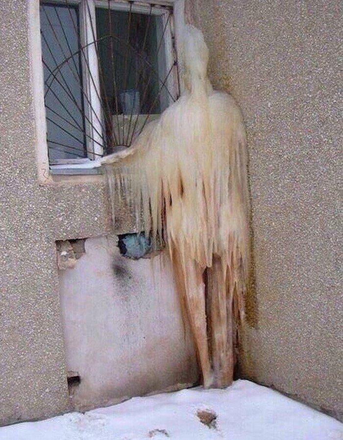 Груда льда зажила своей жизнью и, кажется, пытается пробраться к кому-то в дом