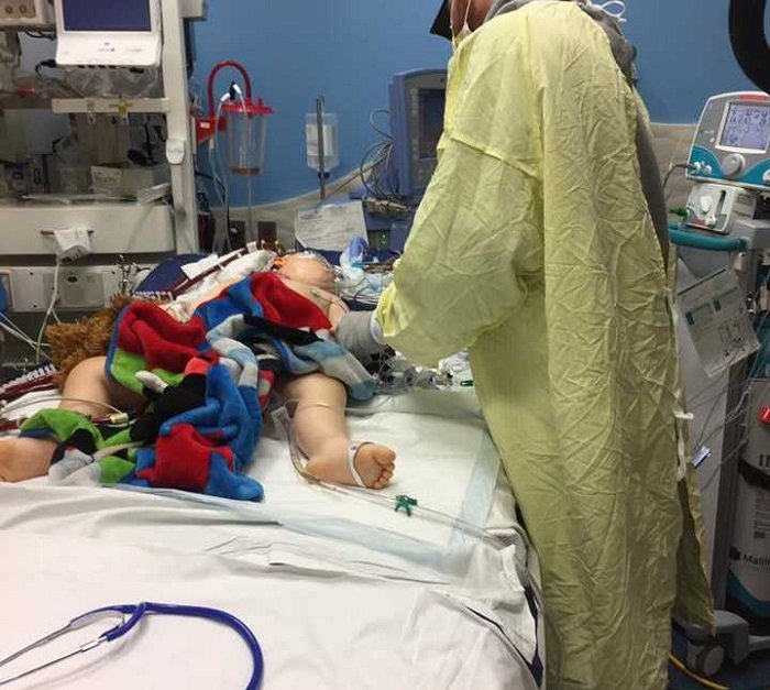На следующий день медики заменили интубационную трубку трахеи. Ранее использовалась трубка для годовалых детей, поэтому она постоянно забивалась слизью. В тот же день малыш пережил легкий сердечный приступ…