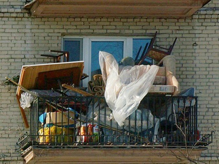 Но не стоит также забывать, что помимо основных комнат в квартире еще зачастую есть балкон или лоджия. Зачастую их используют в качестве черной дыры, в которую можно бесконечно выкидывать различные вещи, не поместившиеся в квартире.