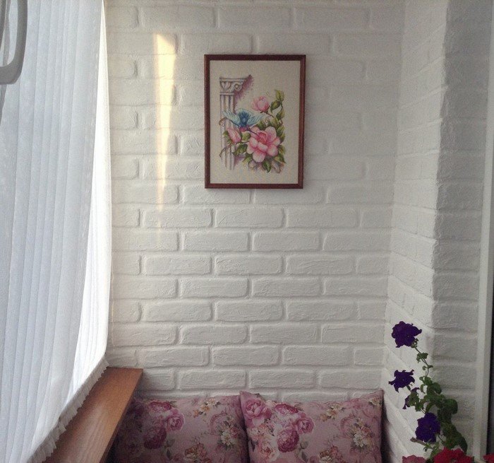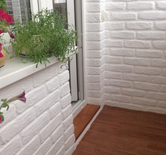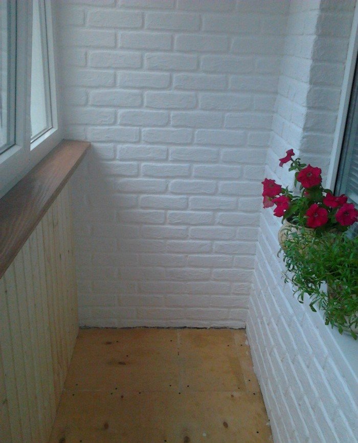 Чтобы визуально расширить лоджию и сделать ее светлее, стены женщина покрасила белой акриловой краской в два слоя