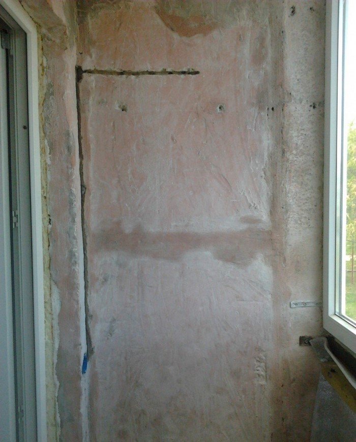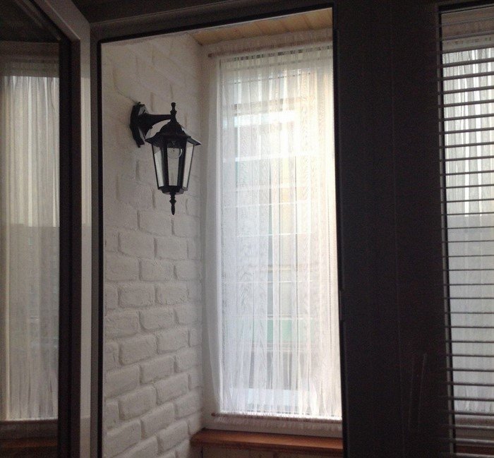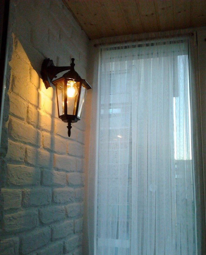 Кроме того, на лоджии решили повесить настенный светильник, поэтому пришлось протянуть из комнаты проводку