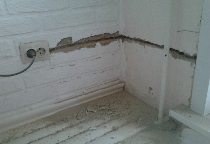 А дальше — настоящее ноу-хау. На стену наносится раствор из плиточного клея и штукатурки в пропорции 1 : 1. Штукатурка подходит любая, кроме гипсовой.