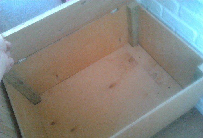 После ремонта мастер собрал маленький диванчик со встроенным сундуком