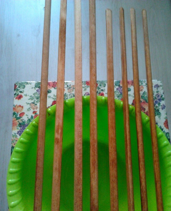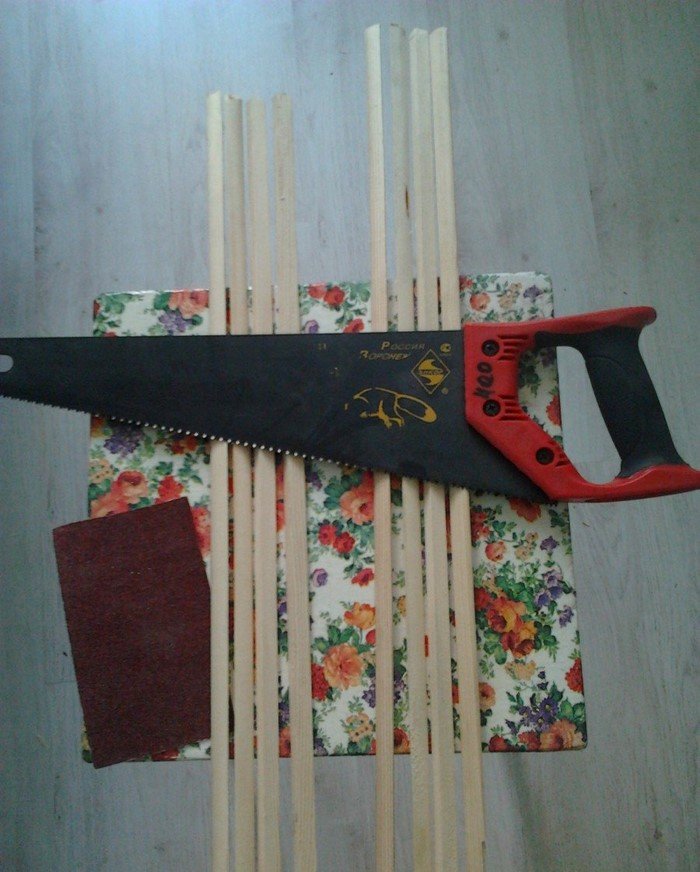 Карнизы для штор сделали из обычных штапиков. Деревянные рейки распилили, обработали наждачной бумагой, покрасили морилкой и затем покрыли лаком