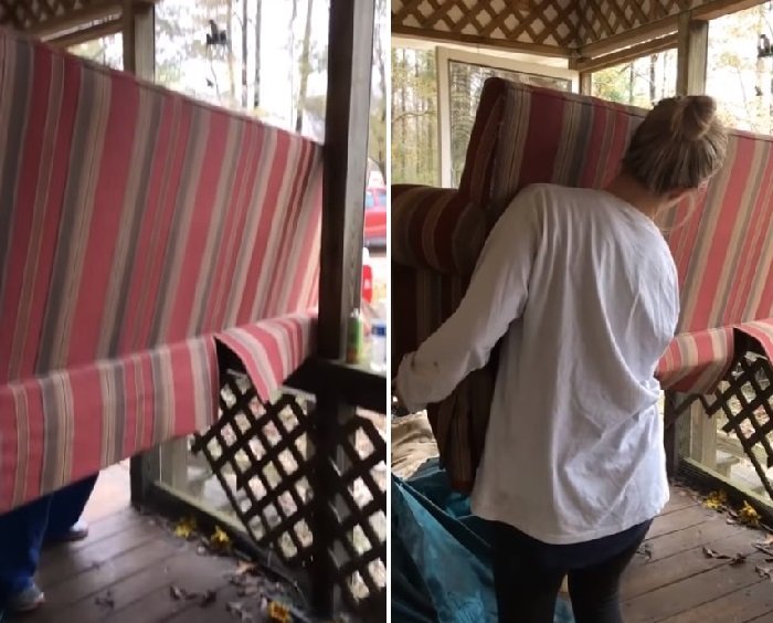 Затем пришел черед старой мебели, которую заменили на новую.