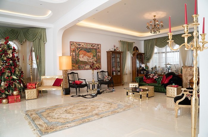 Одну из комнат музыканта переоборудовали в современную библиотеку, построили детский театр для его детей, установили на кухне новую мебель. Одну из комнат превратили в соляную пещеру.