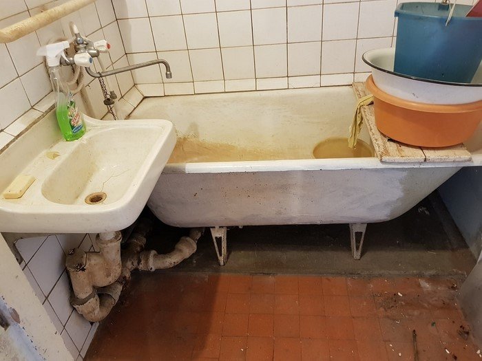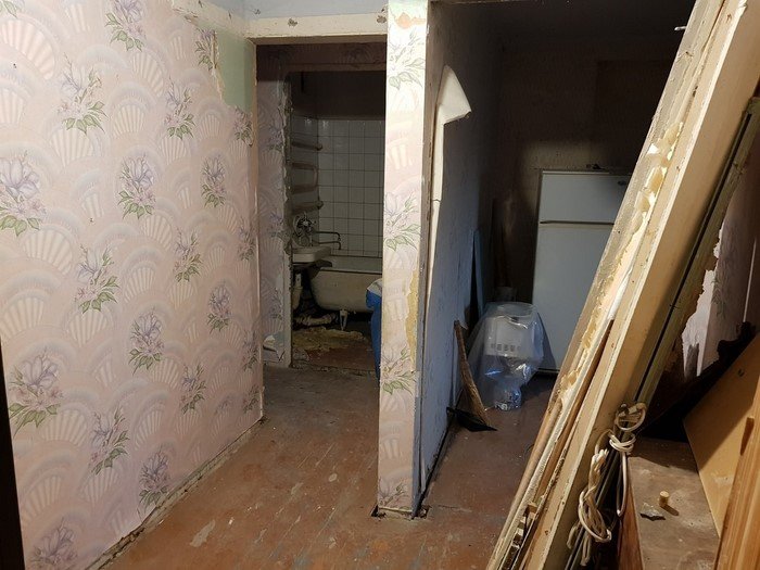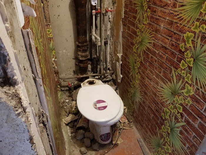 Сам же процесс ремонта начался, как водится, с разрушения оставшихся целыми прежних конструкций. Сделать это было непросто: по словам мужчины, одна лишь замена плинтуса в ванной заставила его покрыться холодным потом.
