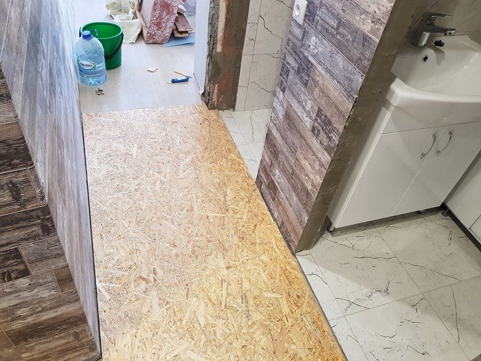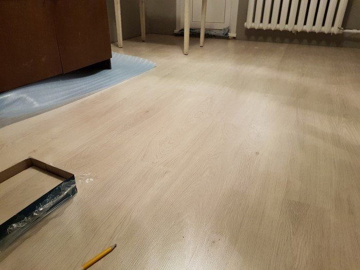Зато пол беларус делал в одиночку. Поверх старого сначала уложил ориентированно-стружечные плиты, чтобы сгладить все неровности. Над плитами в прихожей и кухне мужчина использовал линолеум, во всех остальных помещениях положил ламинат.