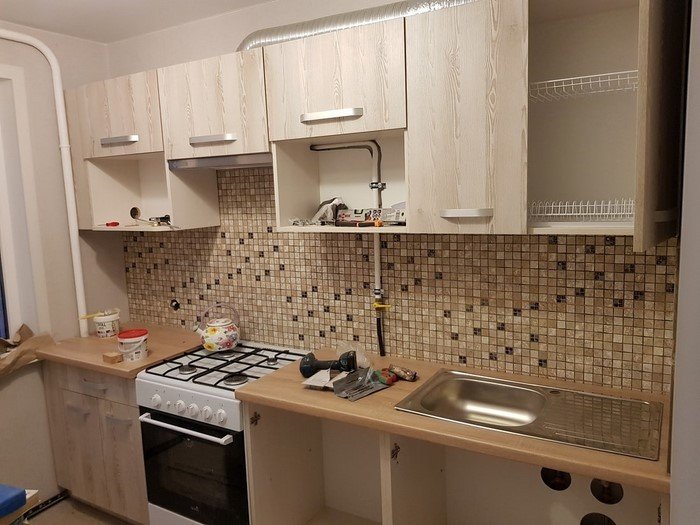 Последним пунктом в списке мужчины шла кухня. Ее беларусу понравилось делать больше всего. Заказывал минчанин только распил, всю установку совершал самостоятельно.