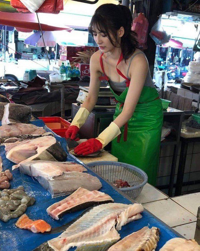 Красавица не только мастерски разделывала рыбу, но и притягивала к себе сотни зевак. Ее фотографии собирают тысячи лайков и комментариев. Многие пользователи пытались узнать, где можно купить рыбу у этой девушки.