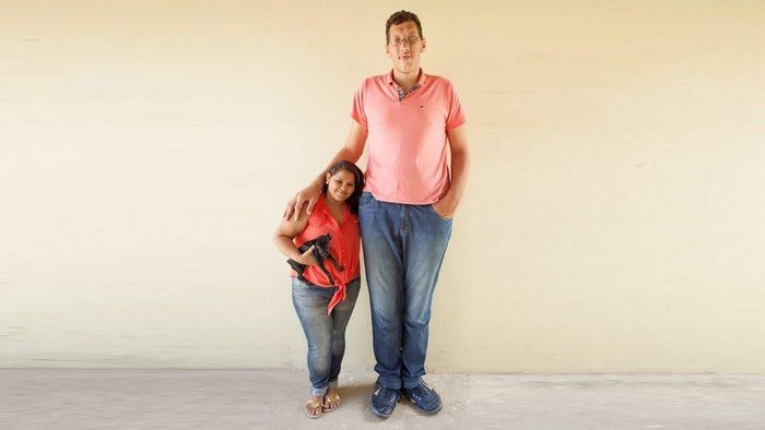 Самый высокий человек Бразилии, чей рост составляет 234 см, из-за высокого роста часто подвегался насмешкам и не смог поэтому даже закончить школу. Он вырос застенчивым парнем, но, встретив Эвем, влюбился с первого взгляда и даже почти метровая разница в росте не помешала им построить крепкую семью.