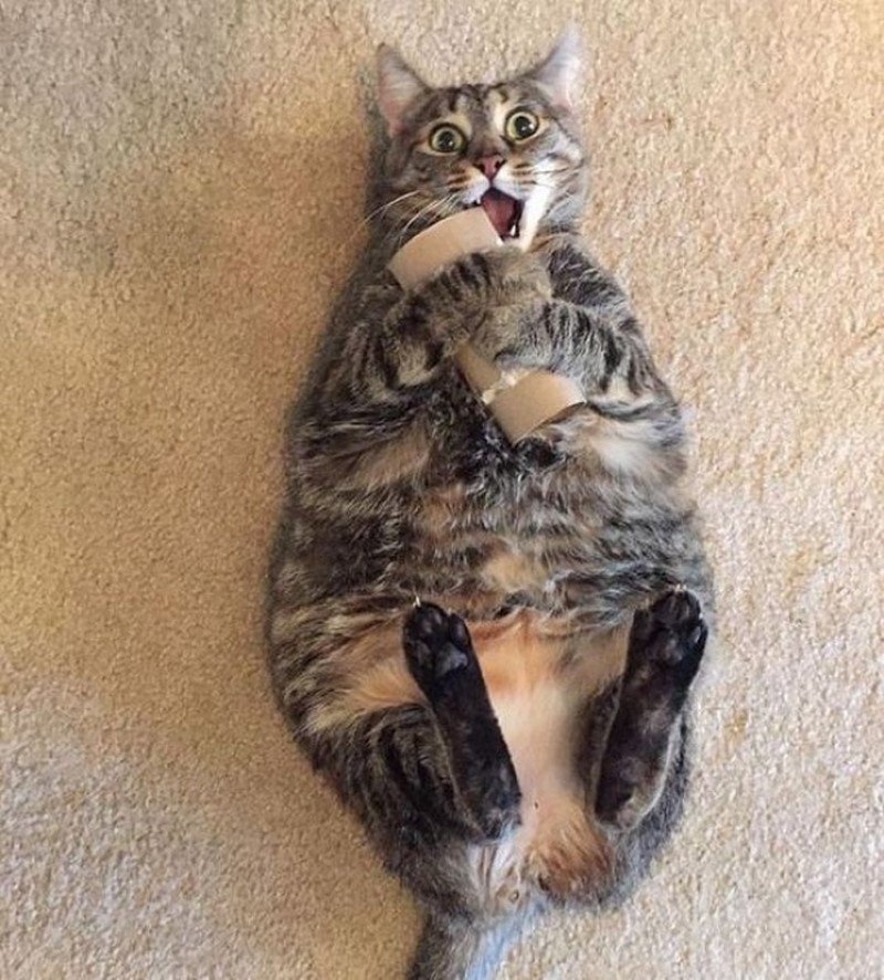 Неужели он так доволен обычной втулкой от туалетной бумаги?